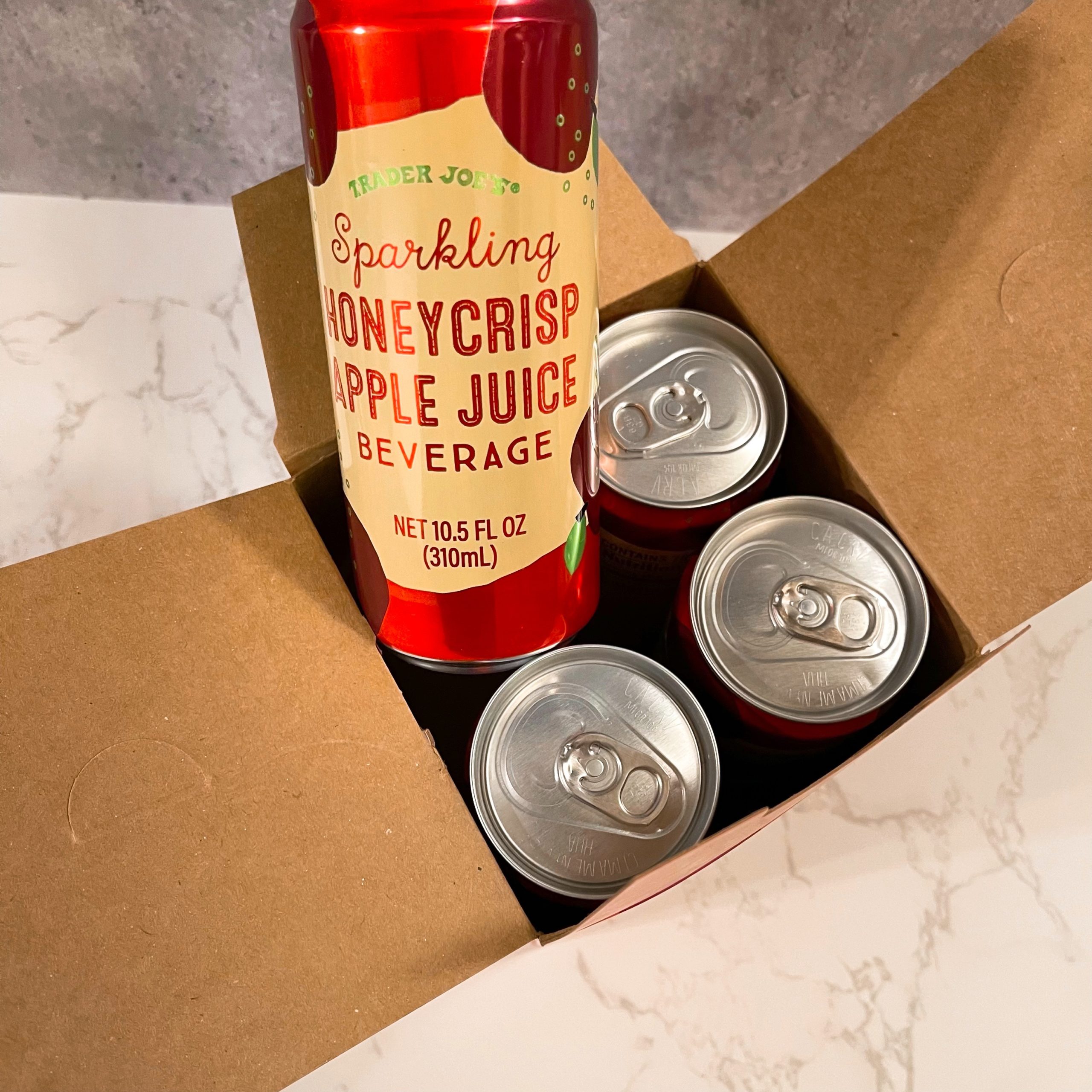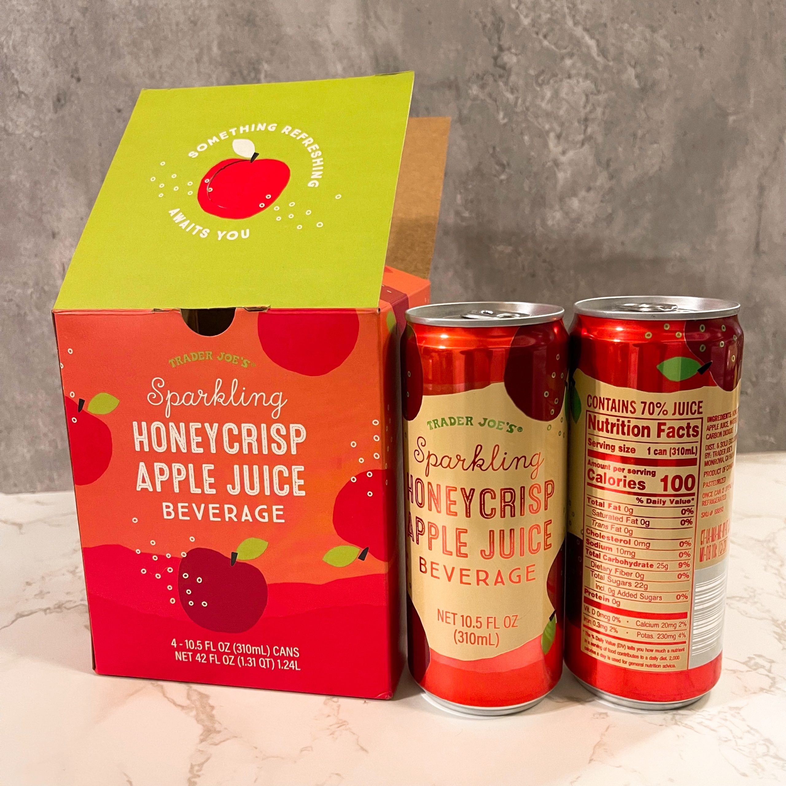 1缶の中には70%のアップルジュースが含まれていて、100カロリーです。